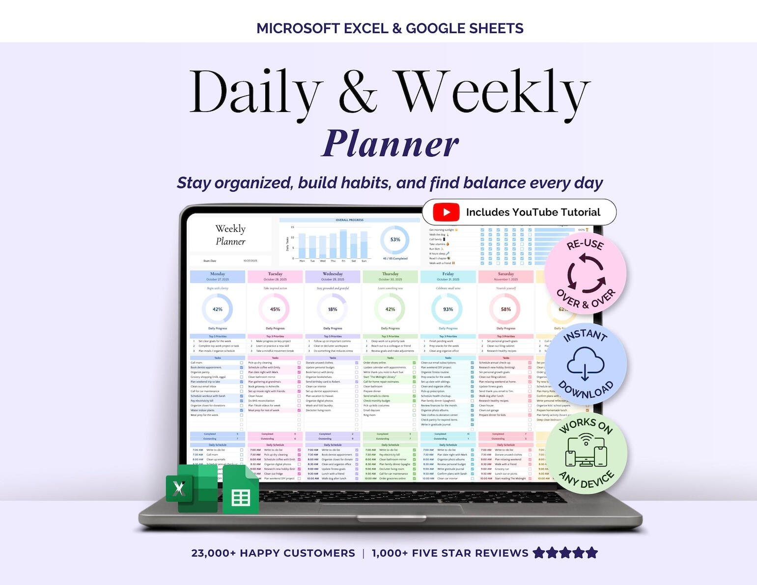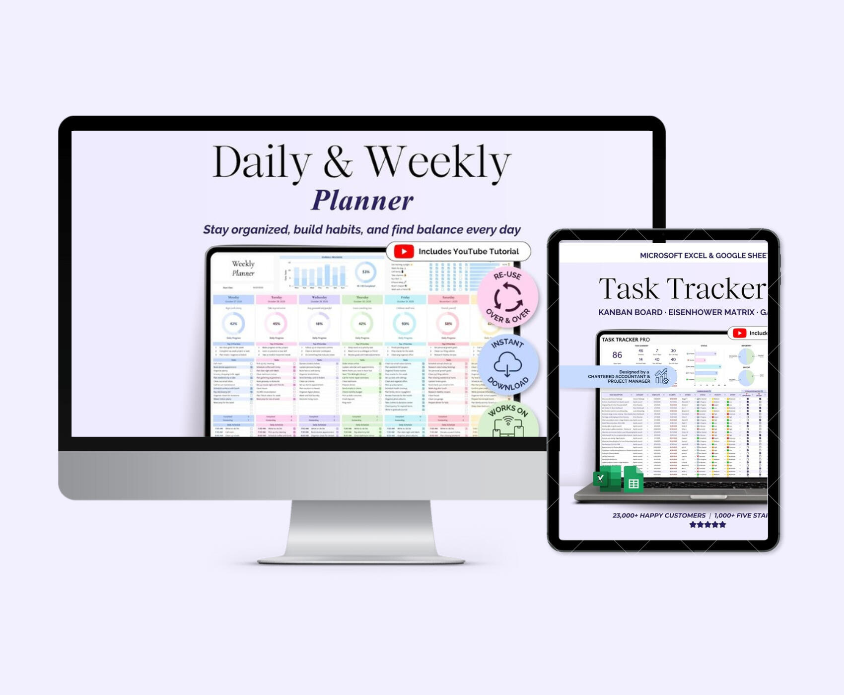 Introducing your new productivity companion – the Daily and Weekly Planner Spreadsheet, designed to help you build consistency and stay on top of your goals. Whether you’re tracking daily habits, creating weekly routines, or monitoring your progress, this tracker has everything you need in a simple, intuitive format.